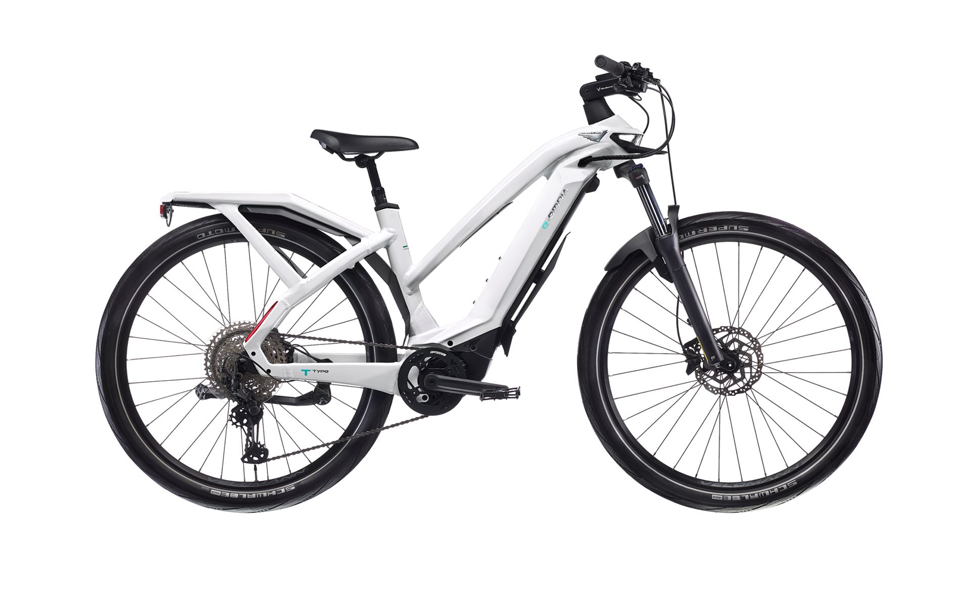 e-Omnia T Type Step Thru ALU, sizes: MD, LG, XL (43,48,53), 12x148mm Thru-axle, Ready to fix the chainguard, Post mount 160 disc brake type, Ready to fix rear kyckstand,custom rear carrier integrated in the frame design, BatteryWall Bosch OmniaX/T/FX, Set