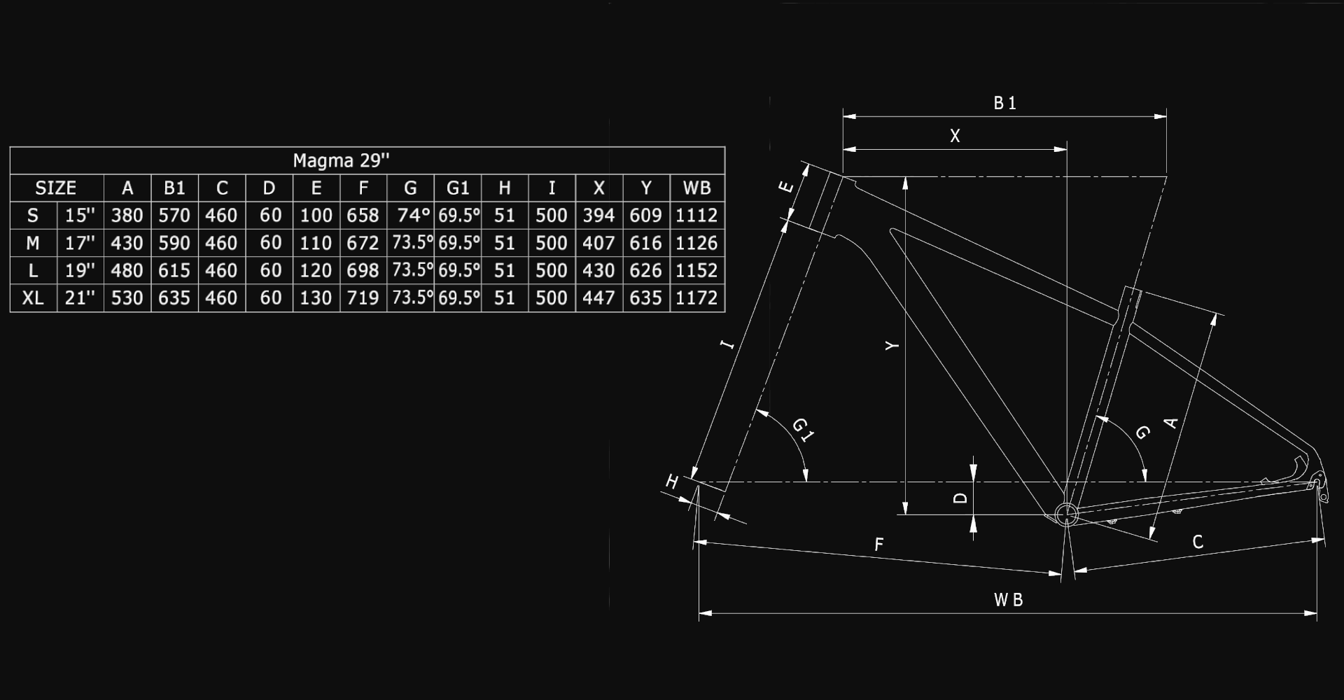 Magma 29 alu, 1.1/8" HT, BSA 68mm, seatpost diam. 27,2mm, HDM bottom pull or Side-Swing, PM 160mm, BOOST 9x141mm QR, internal cable routing, sizes 15-17-19-21"