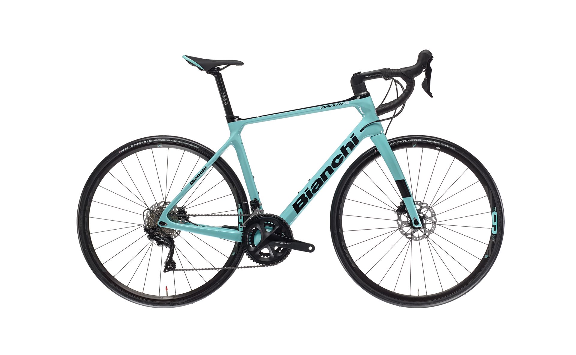 Infinito XE Disc carbon, tapered HT 1.1/8"- 1.5", Mechanical/Electronic Di2 shifting compatible, compatible with 32" tire, PressFit 86,5x41mm BBset, thru axle 12x142mm, sizes 47-50-53-55-57-59-61cm